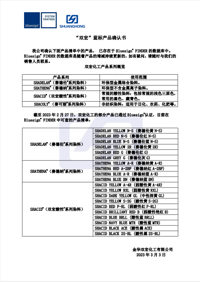 “雙宏”藍(lán)標(biāo)產(chǎn)品確認(rèn)書